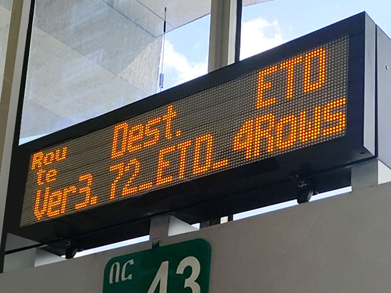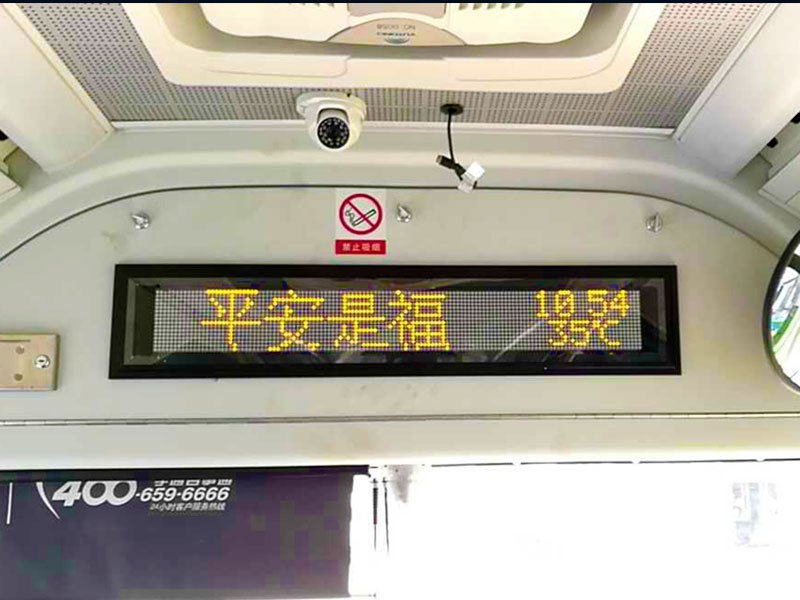 ZZG有不同尺寸的LED(或LCD條形屏)內(nèi)屏顯示標(biāo)牌,根據(jù)GPS信息顯示站點(diǎn)信息,時(shí)間,并且與GPS報(bào)站語(yǔ)音同步。方便乘客及時(shí)了解站點(diǎn)信息。在情急情況下乘客也可以觸發(fā)車“STOP”按鈕通知司機(jī)。